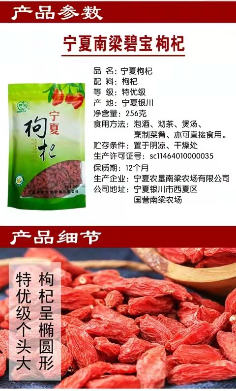 寧夏農墾南梁農場有限公司【原寧夏枸杞企業(集團)公司】成立于1992年8月,位于銀川市西夏區南梁農場,是寧夏農墾集團有限公司所屬的枸杞種植、加工、銷售為一體的專業化公司。已有50多年的枸杞栽培歷史,所產枸杞素以粒大、肉厚、籽少、味甜、藥效高而居寧夏枸杞之冠。
